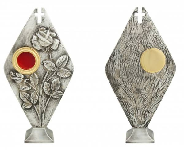 ( number of products: 362 )Okazały relikwiarz mosiężny w formie małej monstrancji zdobiony rubinami o wysokości 33 cm