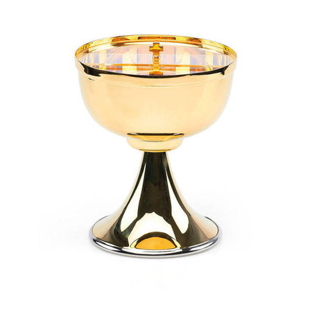 Solidny mosiężny kielich bogato zdobiony kamieniami o wysokości 22 cm, w komplecie z pateną