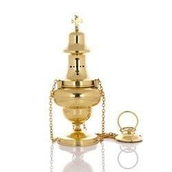 Trybularz mosiężny pozłacany wys. 22 cm
