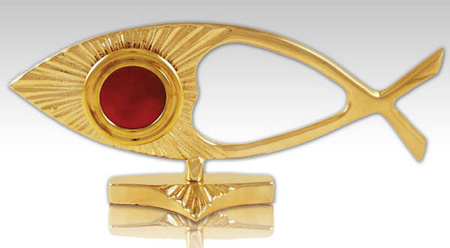Relikwiarz w formie poziomej rybki,złocony na jedną relikwię o wysokości 9,5 cm