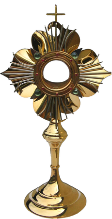 Monstrancja złocona, zdobiona rubinami i srebrnymi promieniami o wysokości 55 cm