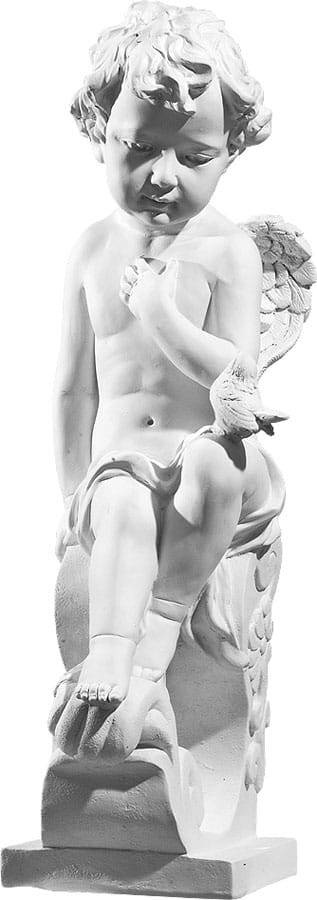 Aniołek siedzący z gołąbkiem na kolanie - figura (47 cm)