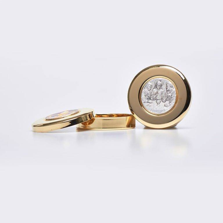 Cyborium z posrebrzaną plakietką „Ostatnia Wieczerza”.