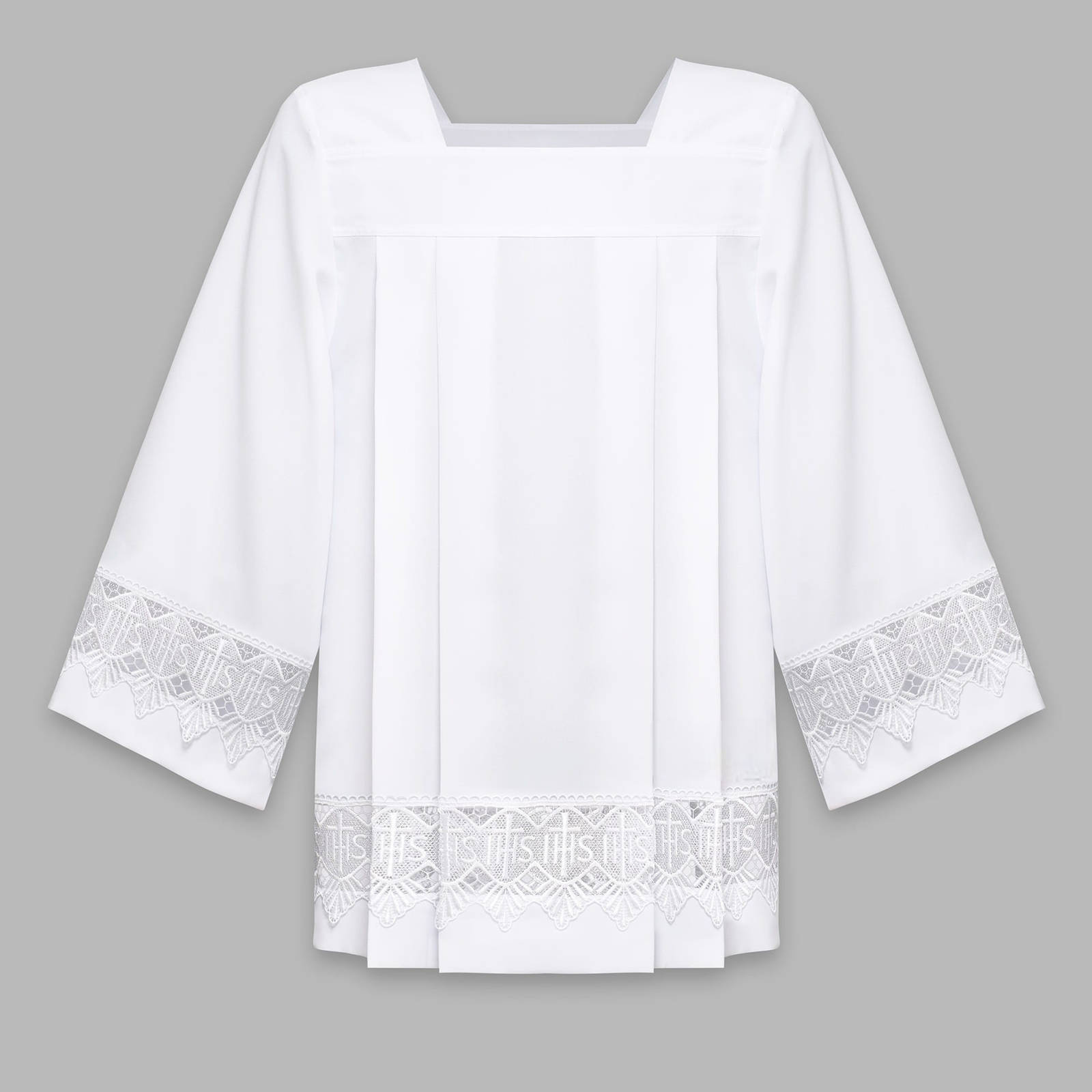 Komża wykonana z żorżety z zakładkami z przodu i z tyłu, dzięki czemu bardzo dobrze się układa.