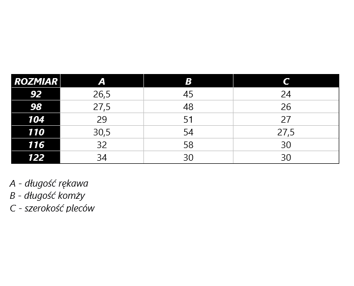 Rozmiar komży dobieramy do aktualnego wzrostu.