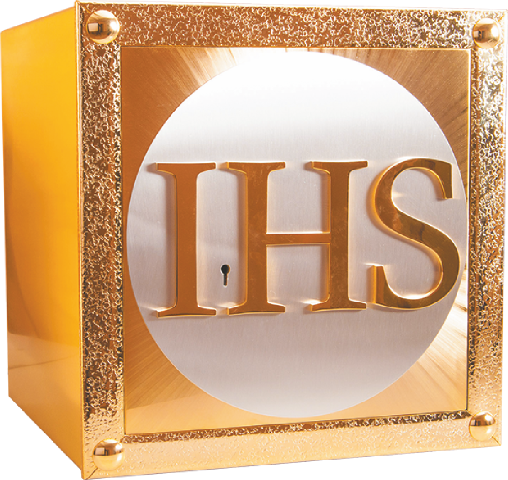 Istnieje możliwość wykonania każdego tabernakulum wg. wytycznych klienta. Standardowo tabernakulum występuje w 3 rozmiarach. Fotografia przedstawia tabernakulum w rozmiarze 30 cm. Dla pozostałych rozmiarów szerokość ramek dookoła drzwi nie ulega zmianie, a proporcje aplikacji zewnętrznej mogą się nieznacznie różnić).