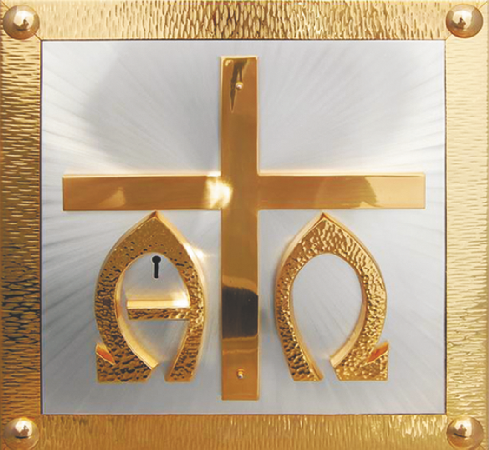 Istnieje możliwość wykonania każdego tabernakulum wg. wytycznych klienta. Standardowo tabernakulum występuje w 3 rozmiarach. Fotografia przedstawia tabernakulum w rozmiarze 30 cm. Dla pozostałych rozmiarów szerokość ramek dookoła drzwi nie ulega zmianie, a proporcje aplikacji zewnętrznej mogą się nieznacznie różnić).