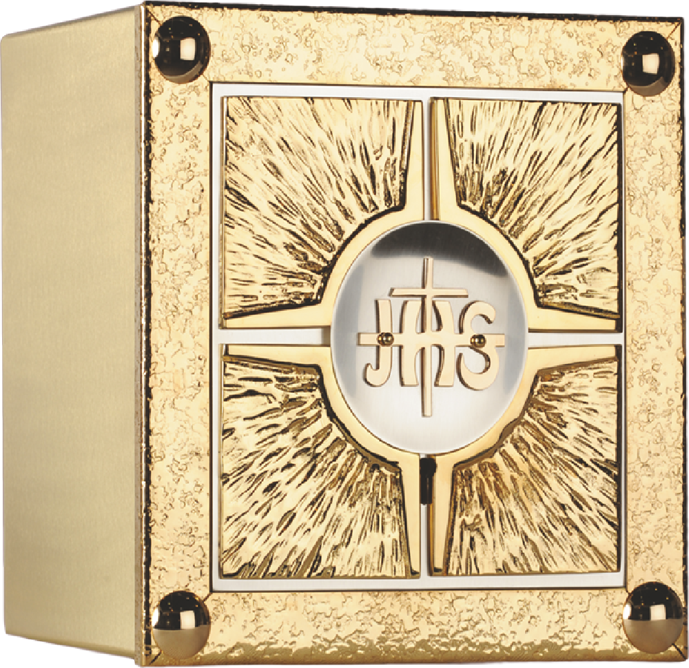 Istnieje możliwość wykonania każdego tabernakulum wg. wytycznych klienta. Standardowo tabernakulum występuje w 3 rozmiarach. Fotografia przedstawia tabernakulum w rozmiarze 30 cm. Dla pozostałych rozmiarów szerokość ramek dookoła drzwi nie ulega zmianie, a proporcje aplikacji zewnętrznej mogą się nieznacznie różnić).