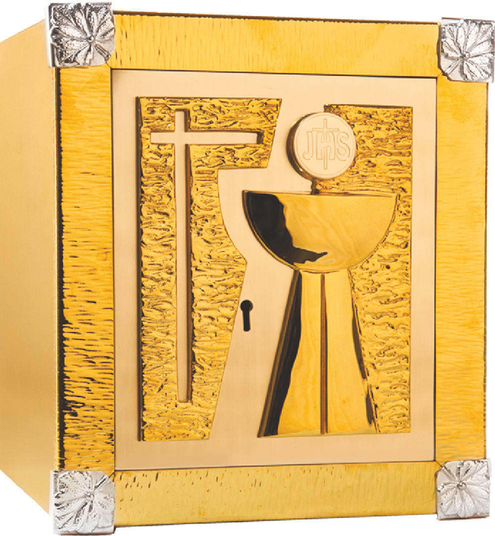 Istnieje możliwość wykonania każdego tabernakulum wg. wytycznych klienta. Standardowo tabernakulum występuje w 3 rozmiarach. Fotografia przedstawia tabernakulum w rozmiarze 30 cm. Dla pozostałych rozmiarów szerokość ramek dookoła drzwi nie ulega zmianie, a proporcje aplikacji zewnętrznej mogą się nieznacznie różnić).
