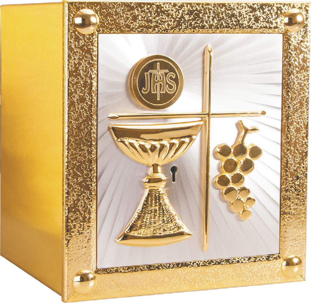 Istnieje możliwość wykonania każdego tabernakulum wg. wytycznych klienta. Standardowo tabernakulum występuje w 3 rozmiarach. Fotografia przedstawia tabernakulum w rozmiarze 30 cm. Dla pozostałych rozmiarów szerokość ramek dookoła drzwi nie ulega zmianie, a proporcje aplikacji zewnętrznej mogą się nieznacznie różnić).