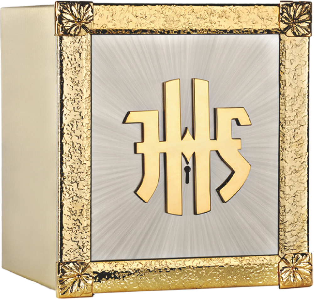 Istnieje możliwość wykonania każdego tabernakulum wg. wytycznych klienta. Standardowo tabernakulum występuje w 3 rozmiarach. Fotografia przedstawia tabernakulum w rozmiarze 30 cm. Dla pozostałych rozmiarów szerokość ramek dookoła drzwi nie ulega zmianie, a proporcje aplikacji zewnętrznej mogą się nieznacznie różnić).