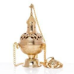 Trybularz mosiężny pozłacany wys. 26,5 cm