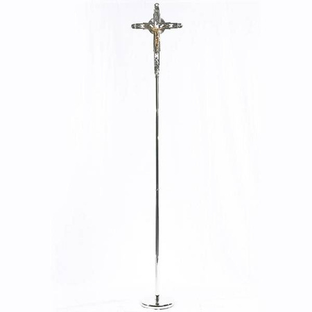 Relikwiarz mosiężny złocony z krzyżem papieskim z podwójnym płomieniem,na jedną relikwię o wysokości 20 cm