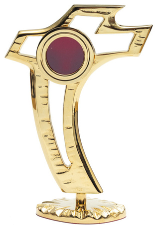 ( ilość produktów: 362 )Relikwiarz mosiężny w kształcie krzyża złocony na jedną relikwię o wysokości 19 cm