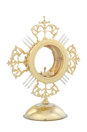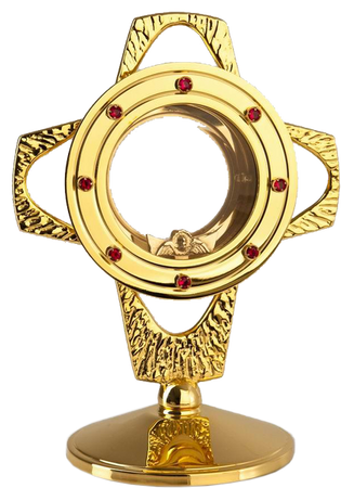 Monstrancja złocona, zdobiona rubinami i srebrnymi promieniami o wysokości 55 cm