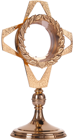Monstrancja złocona, bogato zdobiona kamieniami, na dużą hostię, wysokość 60 cm
