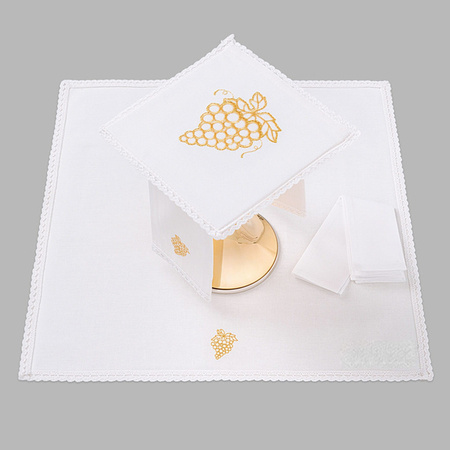 Bielizna kielichowa ołtarzowa wykończona koronką winogrono złote