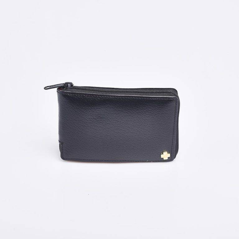 Miękkie portfelowe etui ze skóry cielęcej, zamykana na suwak błyskawiczny.