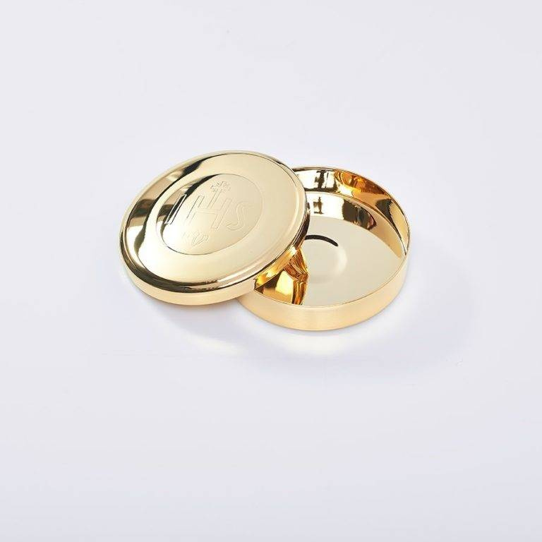 Cyborium z IHS, złocone, grawer, średnica 7,5cm