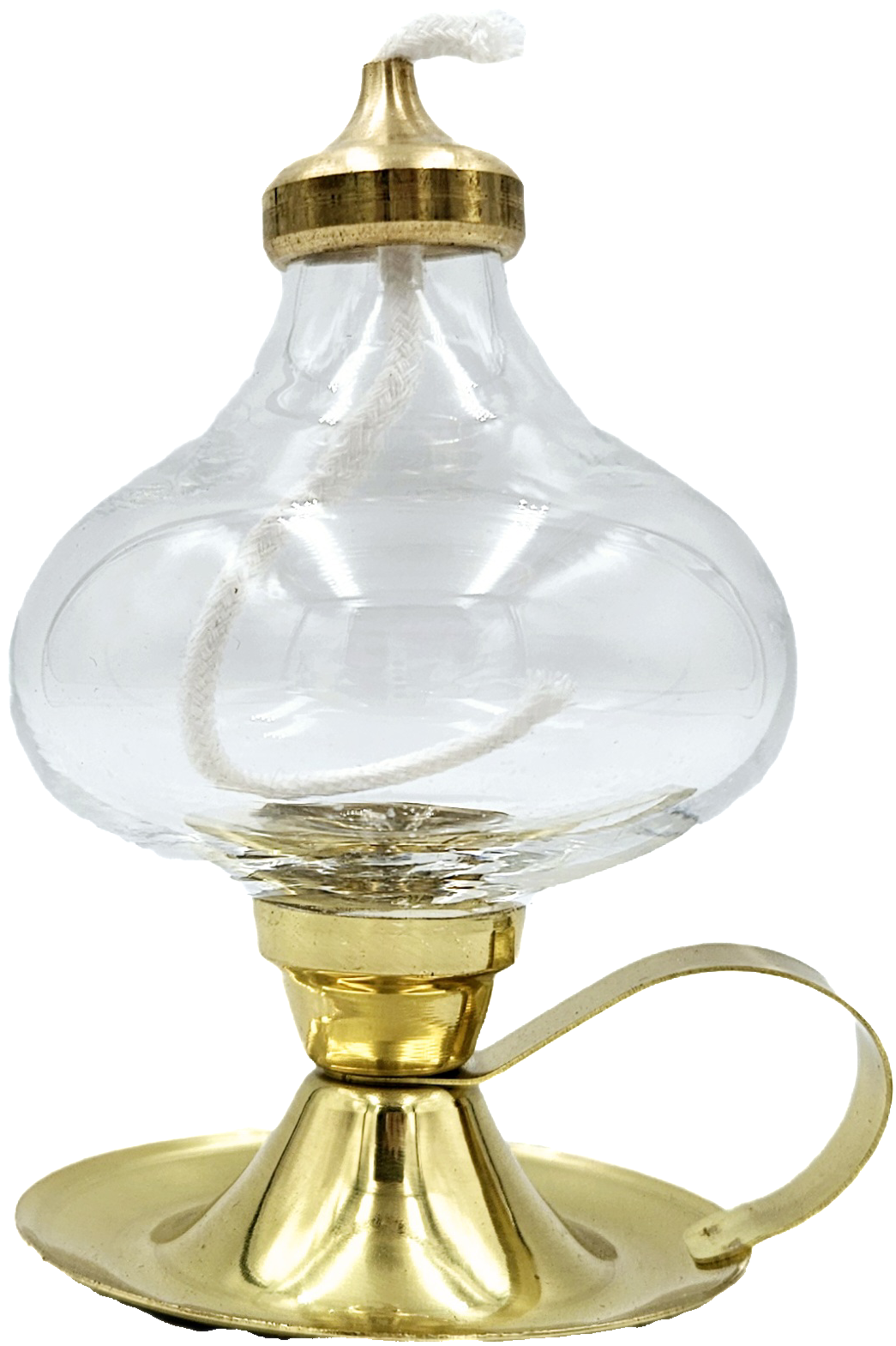 Lampka olejowa ze szklanym kloszem o wysokości 11cm.