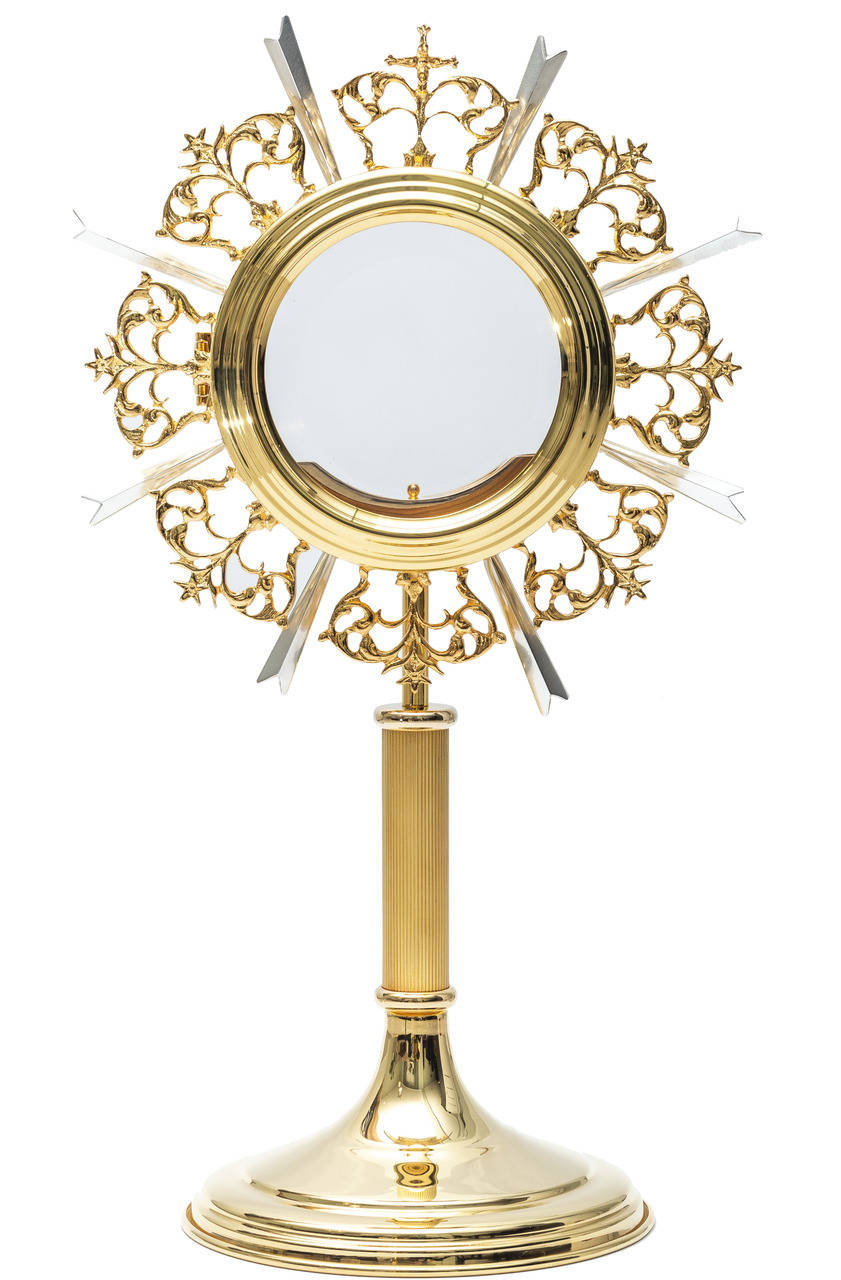 - Monstrancja mosiężna złocona z dużą luną o wysokości 53 cm