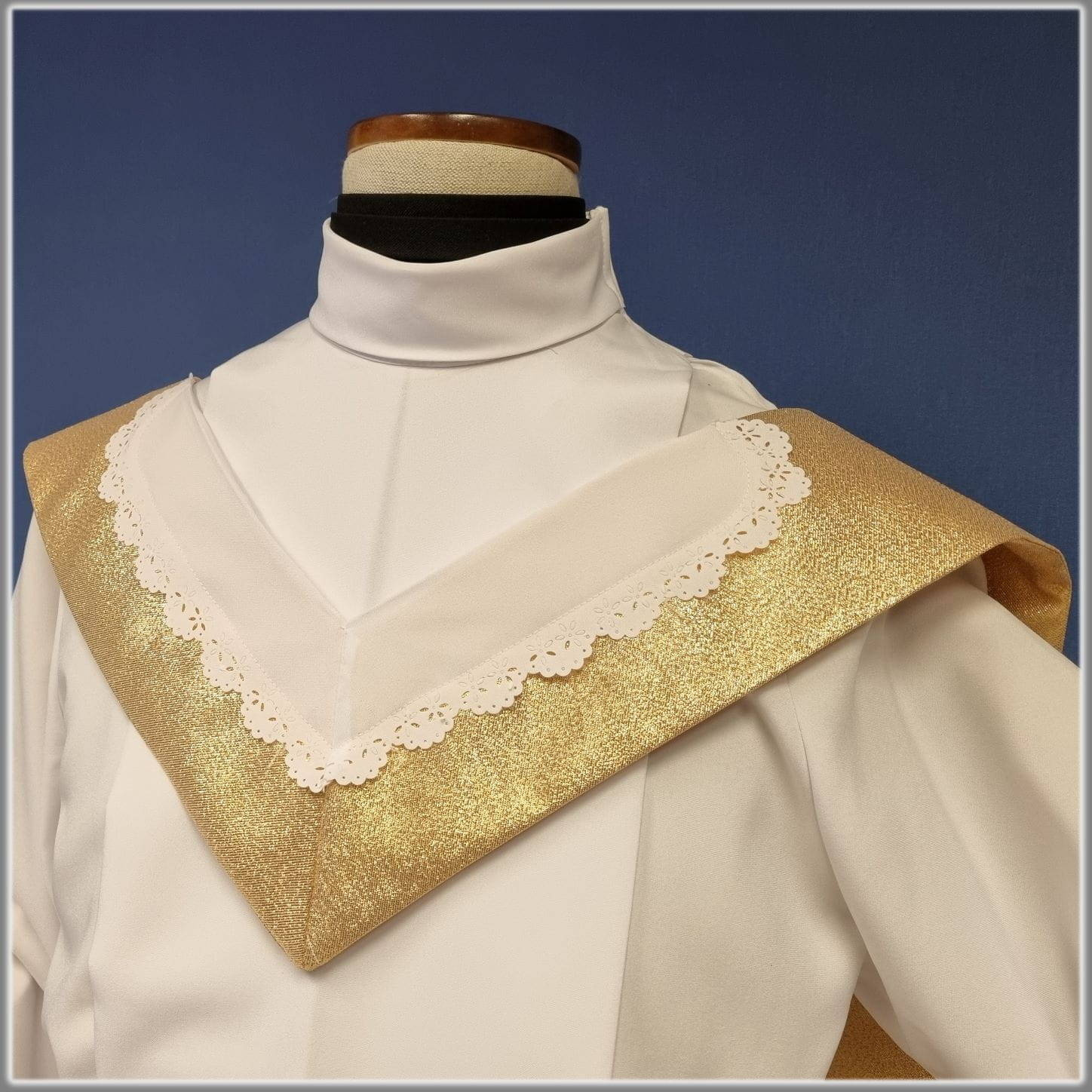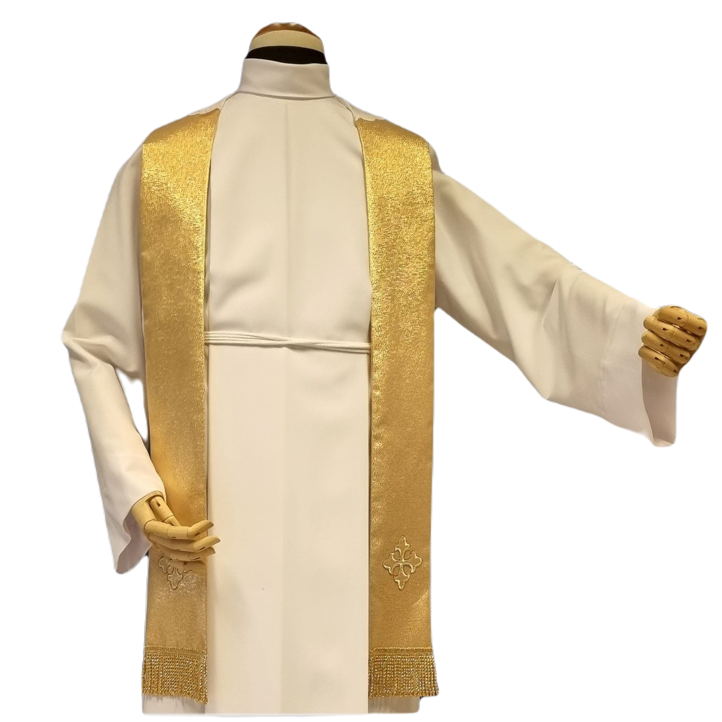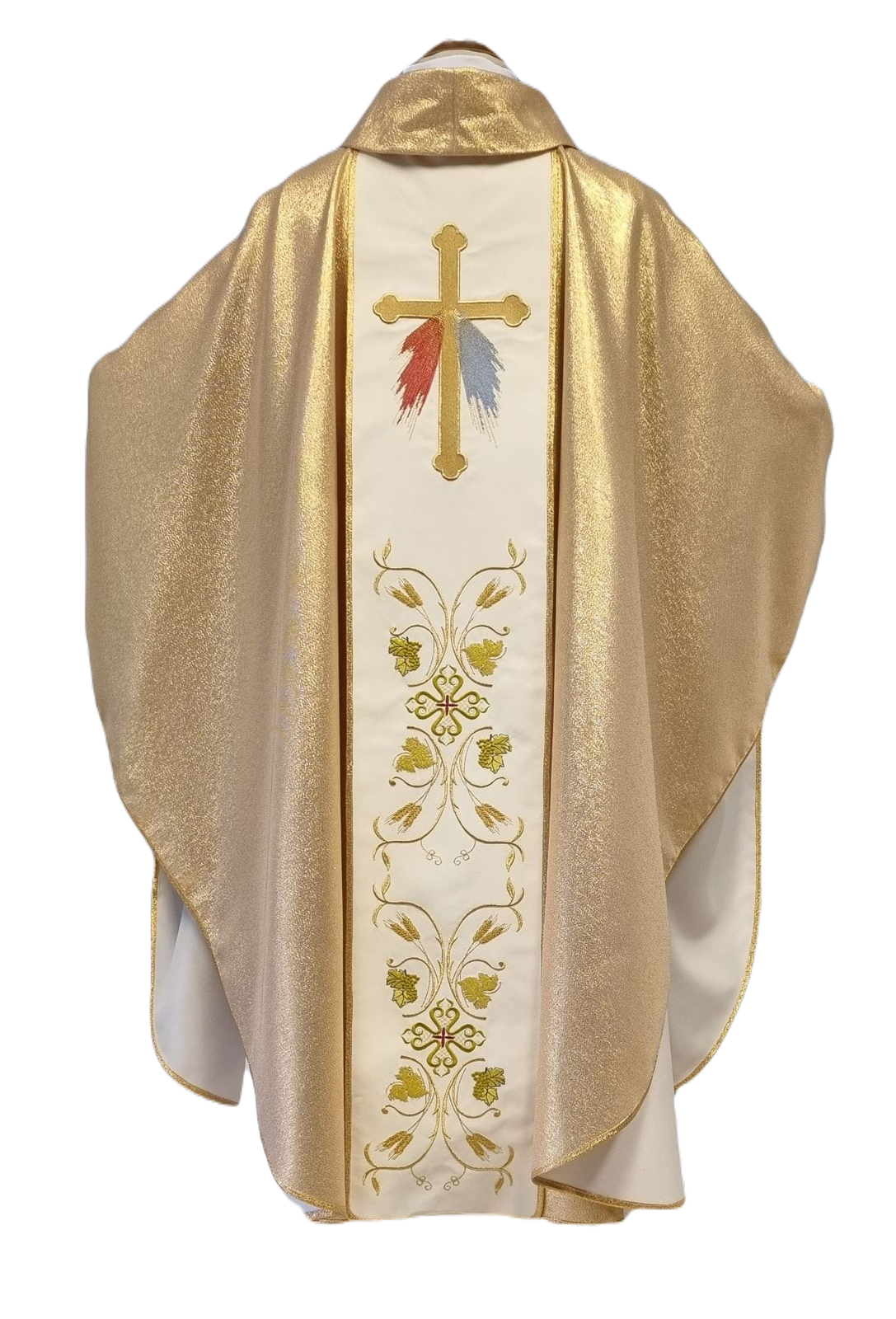 W komplecie stuła z tej samej tkaniny co cały ornat, wykończona złotymi, metalizowanymi