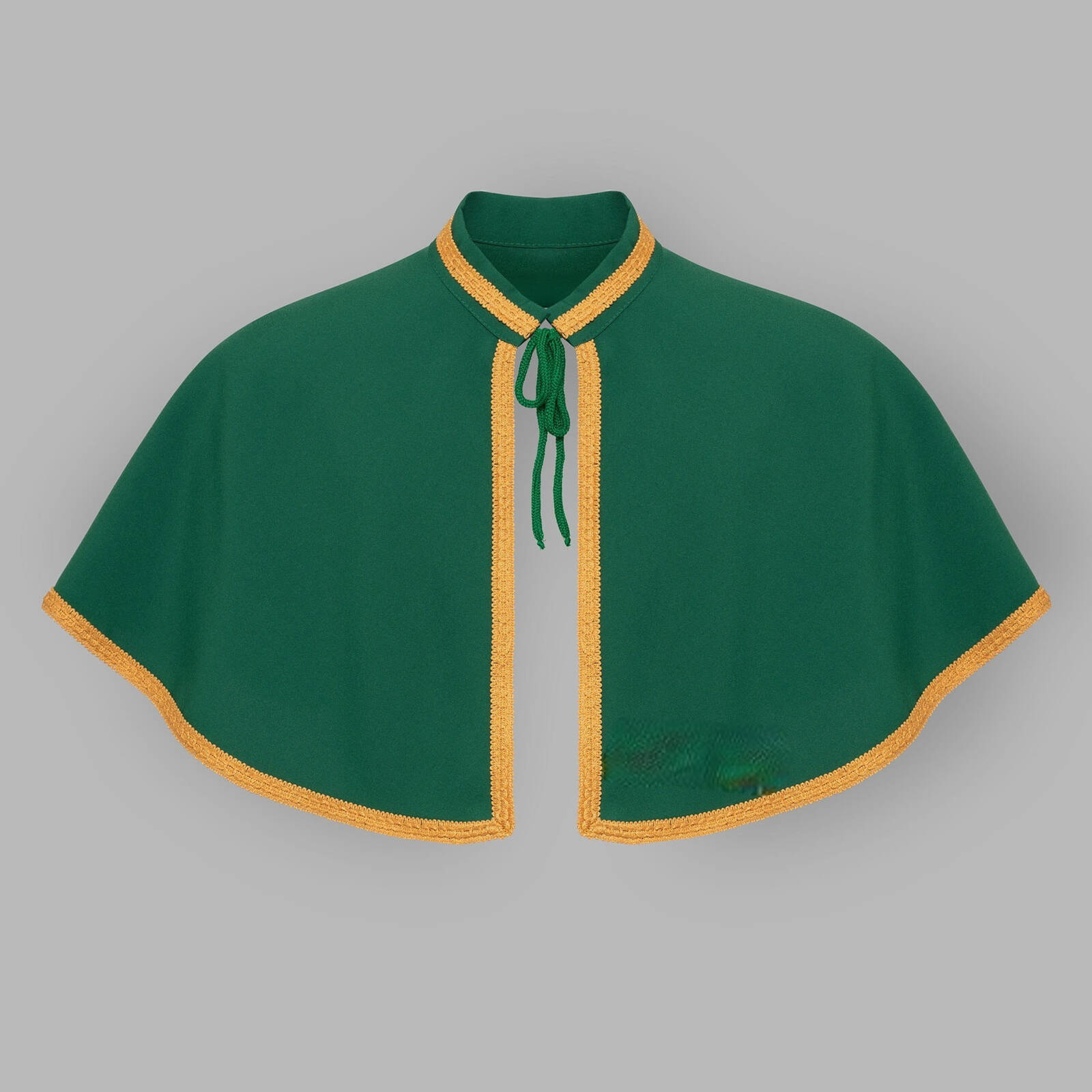Pelerynka wykończona jest złotą ozdobną taśmą.