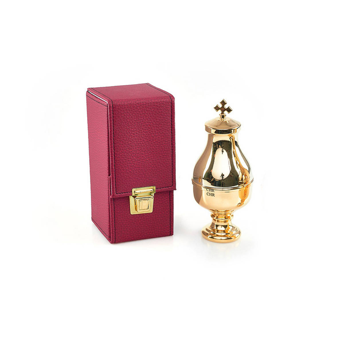 Pojemnik na oleje CRISMERA ALTO  metalowy w kolorze złotym ze szklanym wkładem.