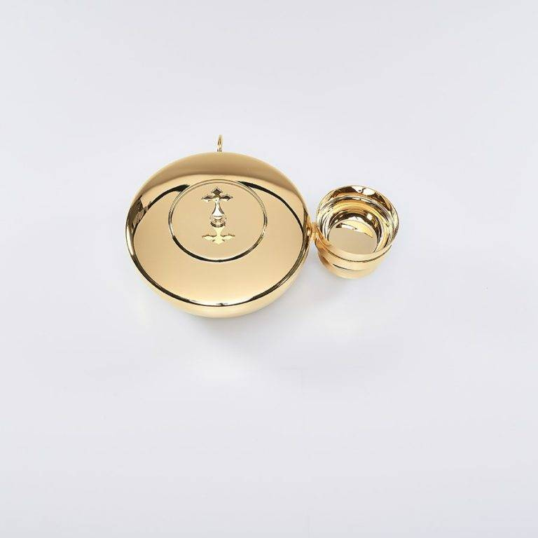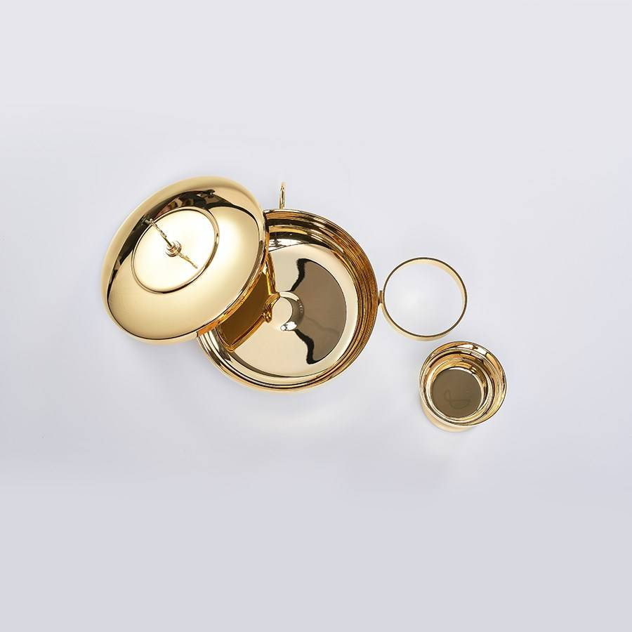 Puszka do komunii pod dwoma postaciami, niska, złocona 15cm