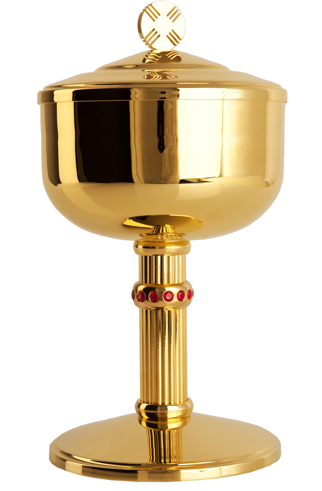 Puszka litrurgiczna na komunikanty zdobiona rubinami, wysokość 29 cm