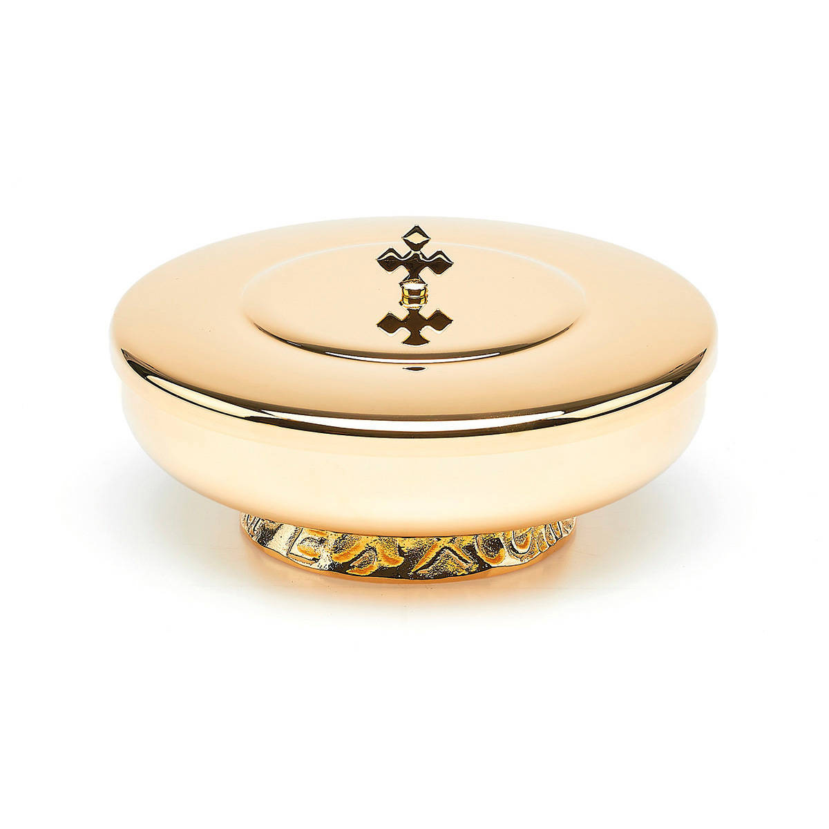 Puszka na komunikanty na nodusie dekorowanym, pozłacana 16cm