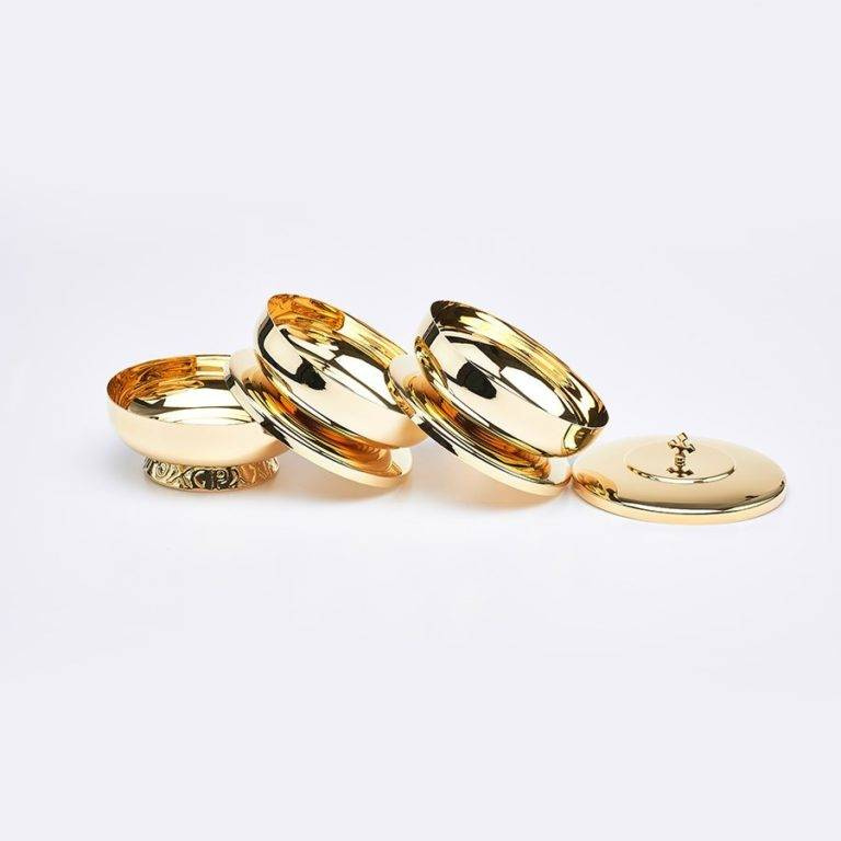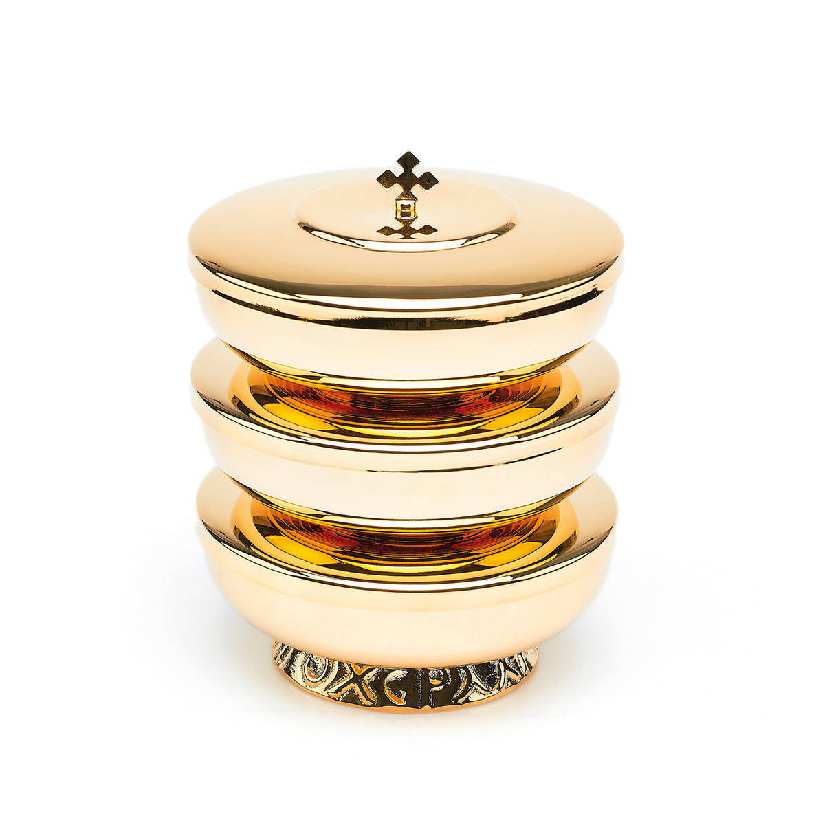 Puszka na komunikanty piętrowa, potrójna, pozłacana