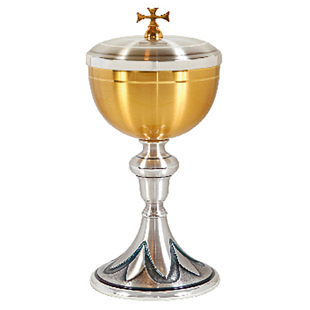 • Czasza złota satynowana, pokrywka srebrzona za pozłacanym krzyżykiem.
