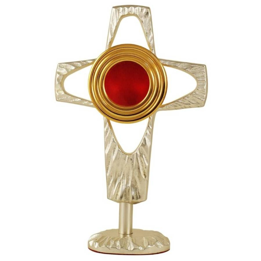 Relikwiarz mosiężny złocony w kształcie krzyża ,dostępny w trzech wersjach kolorystycznych: złotym, srebrnym lub patynowane srebro. Relikwiarz został wykonany z bardzo dużą starannością. Zawiera liczne zdobienia i przetłoczenia, a także został poddany polerowaniu co nadaje mu dodatkowo blasku.