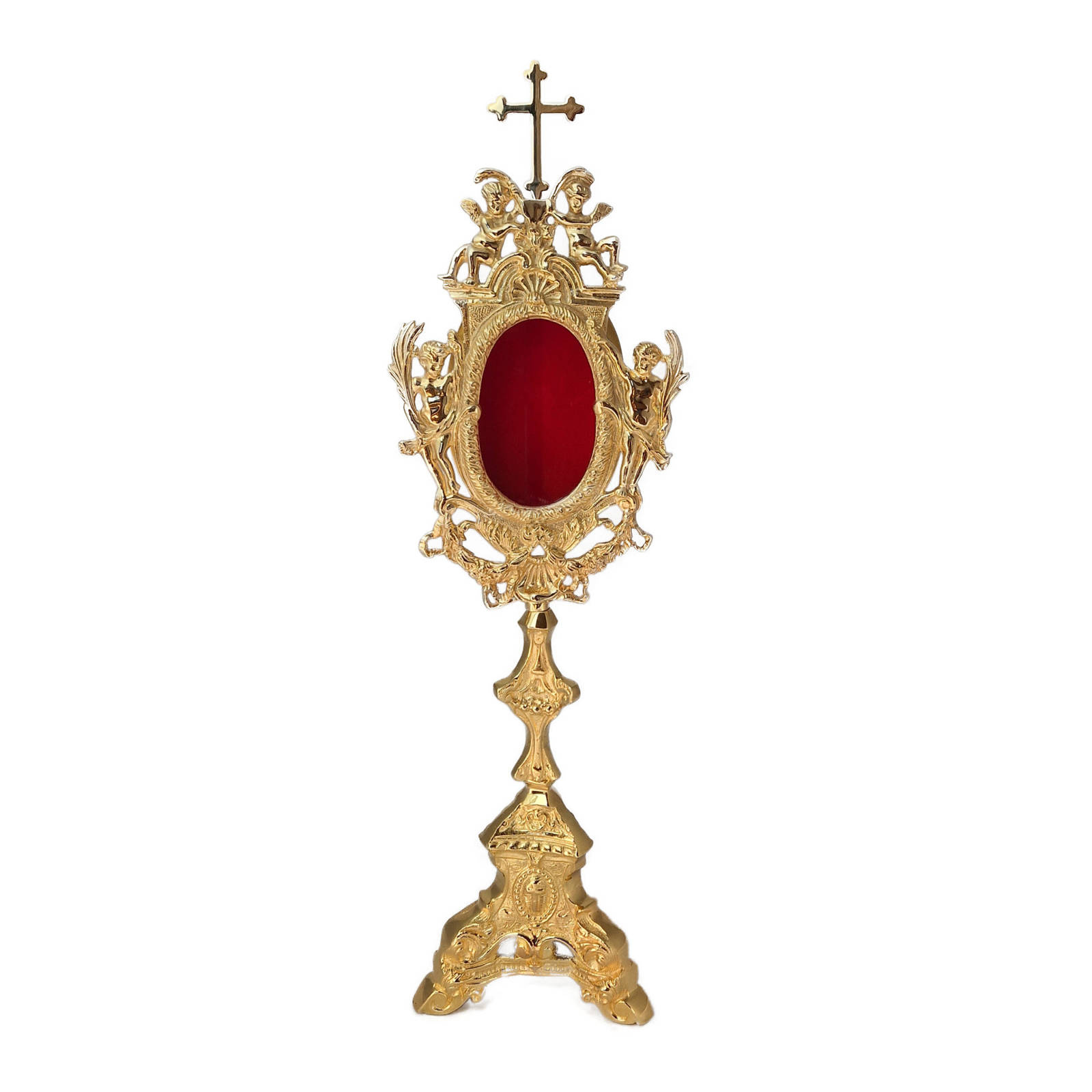 • Odlew mosiężny, złocony. Wnętrze kapsuły wyklejone czerwonym welurem.