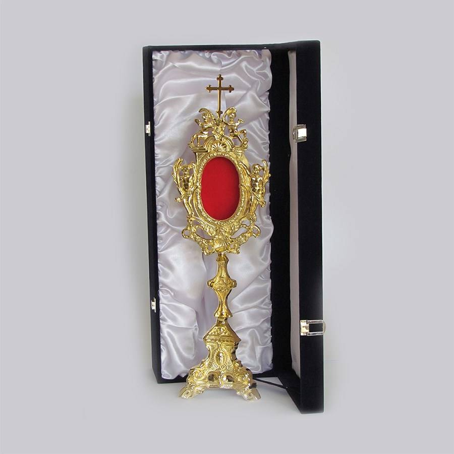 • Relikwiarz w stylu barokowym w komplecie z eleganckim futerałem.
